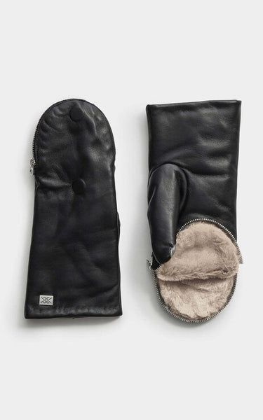 Soia & Kyo Betrice Faux Fur Lined Mittens in Black w Fawn