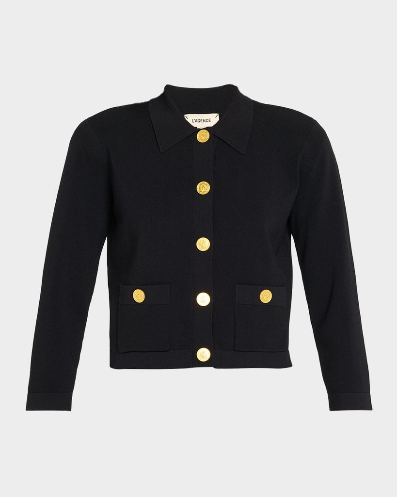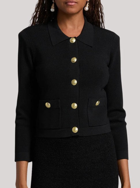 L'AGENCE Osiris Collared Cardigan in Black/Gold