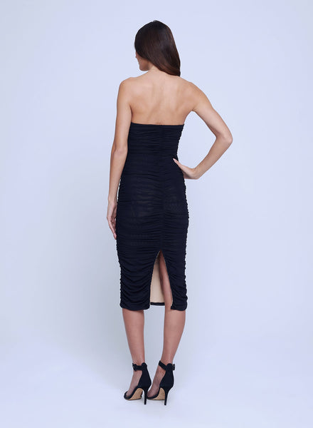 L'AGENCE Caprice Strapless Midi Dress in Black