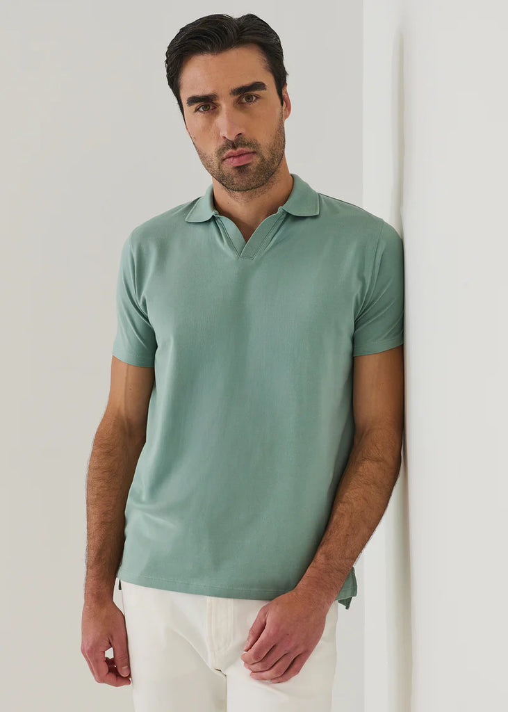 Patrick Assaraf Pima Cotton Stretch Open Polo - Washed Green