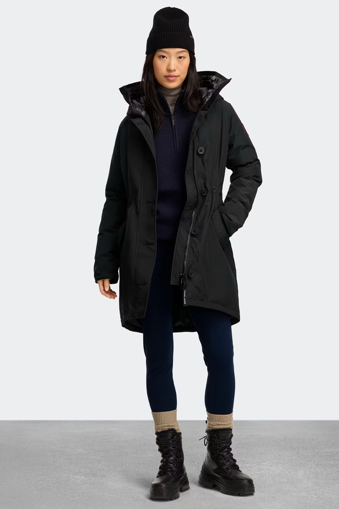 One of our most-loved styles, the Rossclair Parka, gets an update with streamlined hood details, elevated trims, and additional inside pockets. This mid-length parka is crafted from our durable Arctic Tech® fabric that’s designed to face harsh elements. Wear it sleek and straight or tighten the adjustable waist to create an A-line silhouette, which helps keep icy drafts out. A longer back hem offers superior protection from cold and wind.