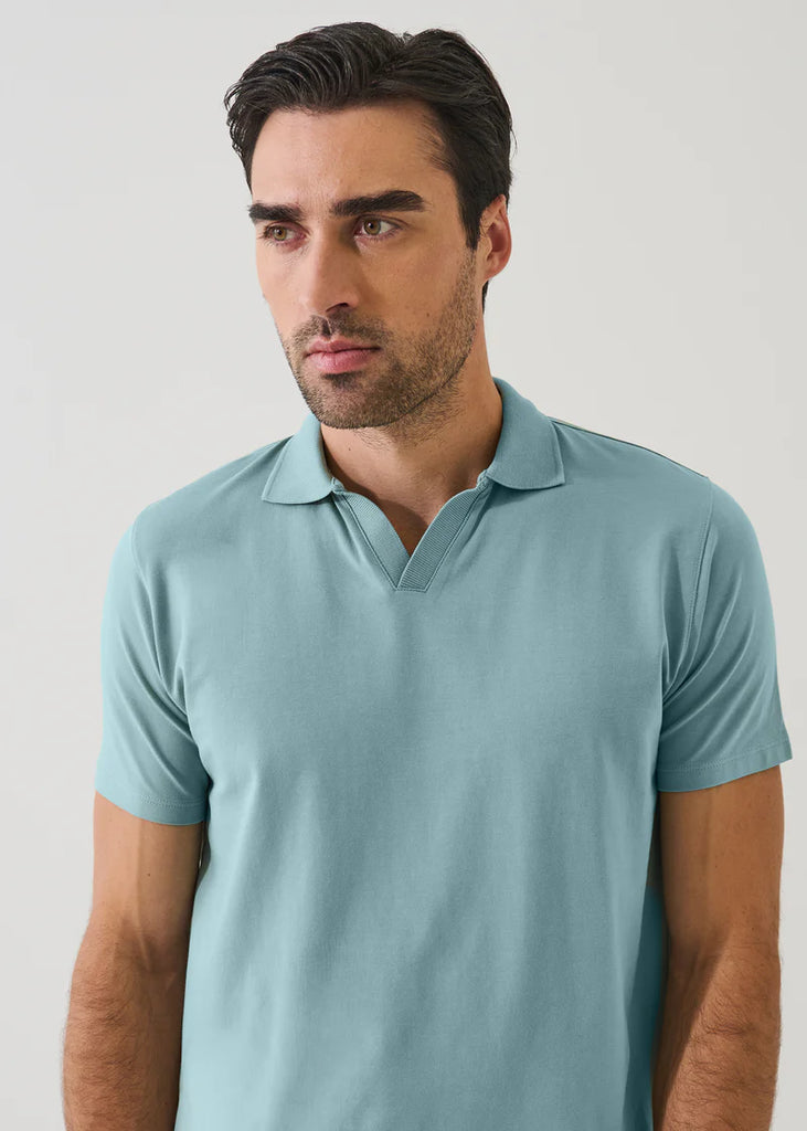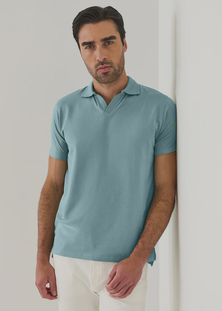 Patrick Assaraf Pima Cotton Stretch Open Polo - Blizzard Blue