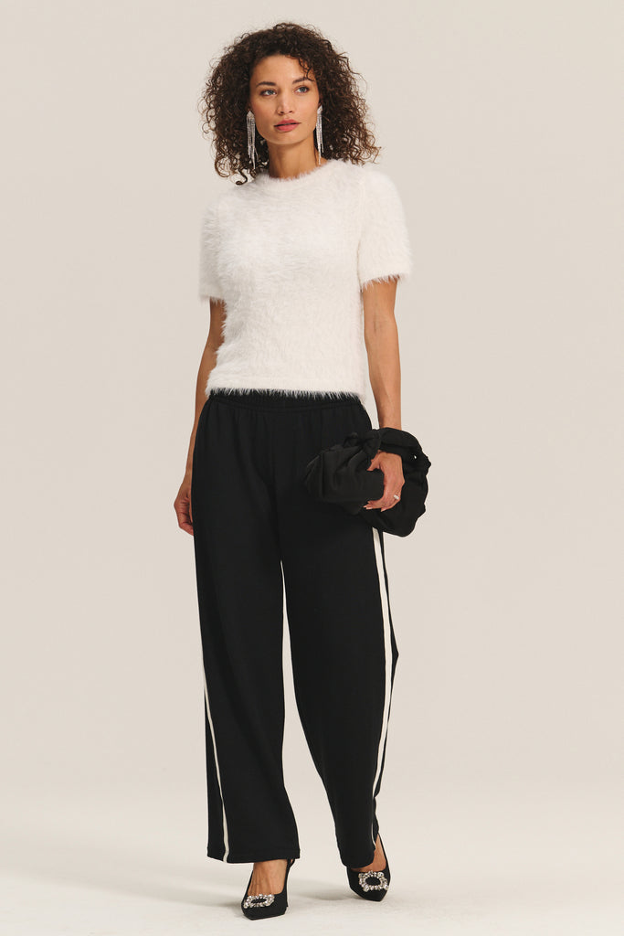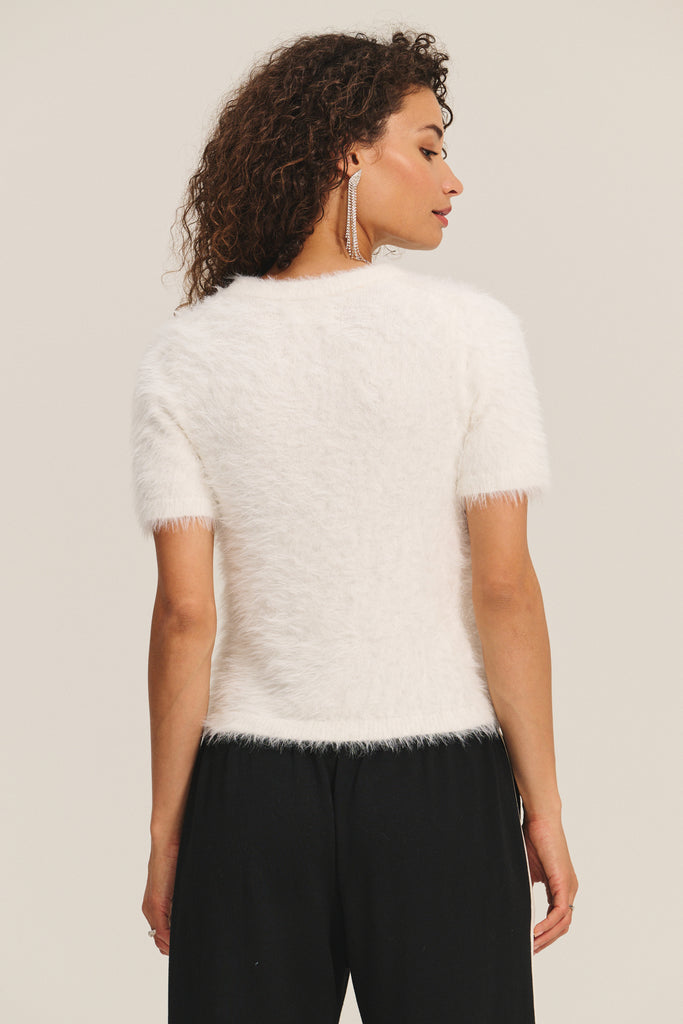 Velvet Kit Feather Yarn Short Sleeve Sweater in Navy