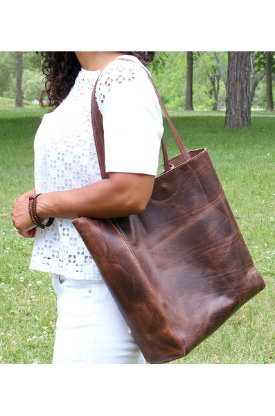 Brave Giovana Nappa Leather Tote in Marone Salvage