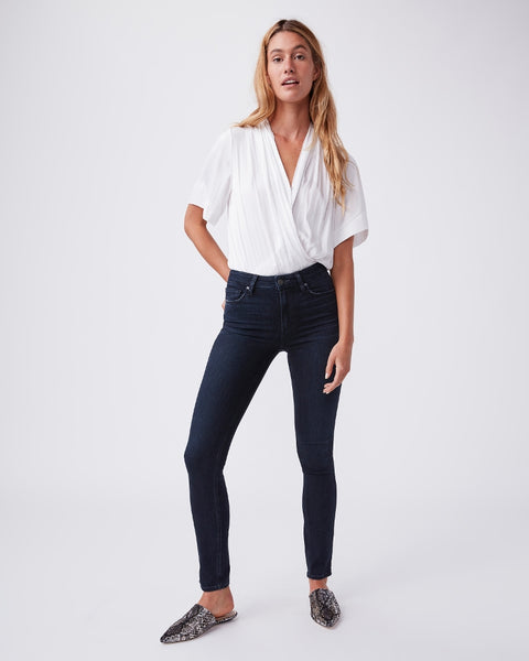The ultimate skinny jean, with a high-rise, ultra skinny leg opening and full length silhouette. This pair comes in a clean, dark blue wash that almost looks black. Cut from our bestselling TRANSCEND denim, this style is luxuriously soft with plenty of stretch and recovery to give it a flawless fit from morning to moonlight.
